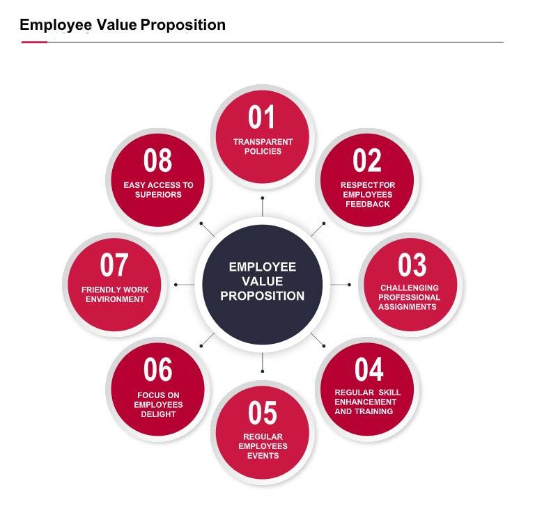 We are focused on instilling these values in our people and process to create sustainable growth and provide uncompromised quality to our clients & EVP is a solution for attracting talent in a very competitive job market. EVP market is a best combination of 5 key factors :